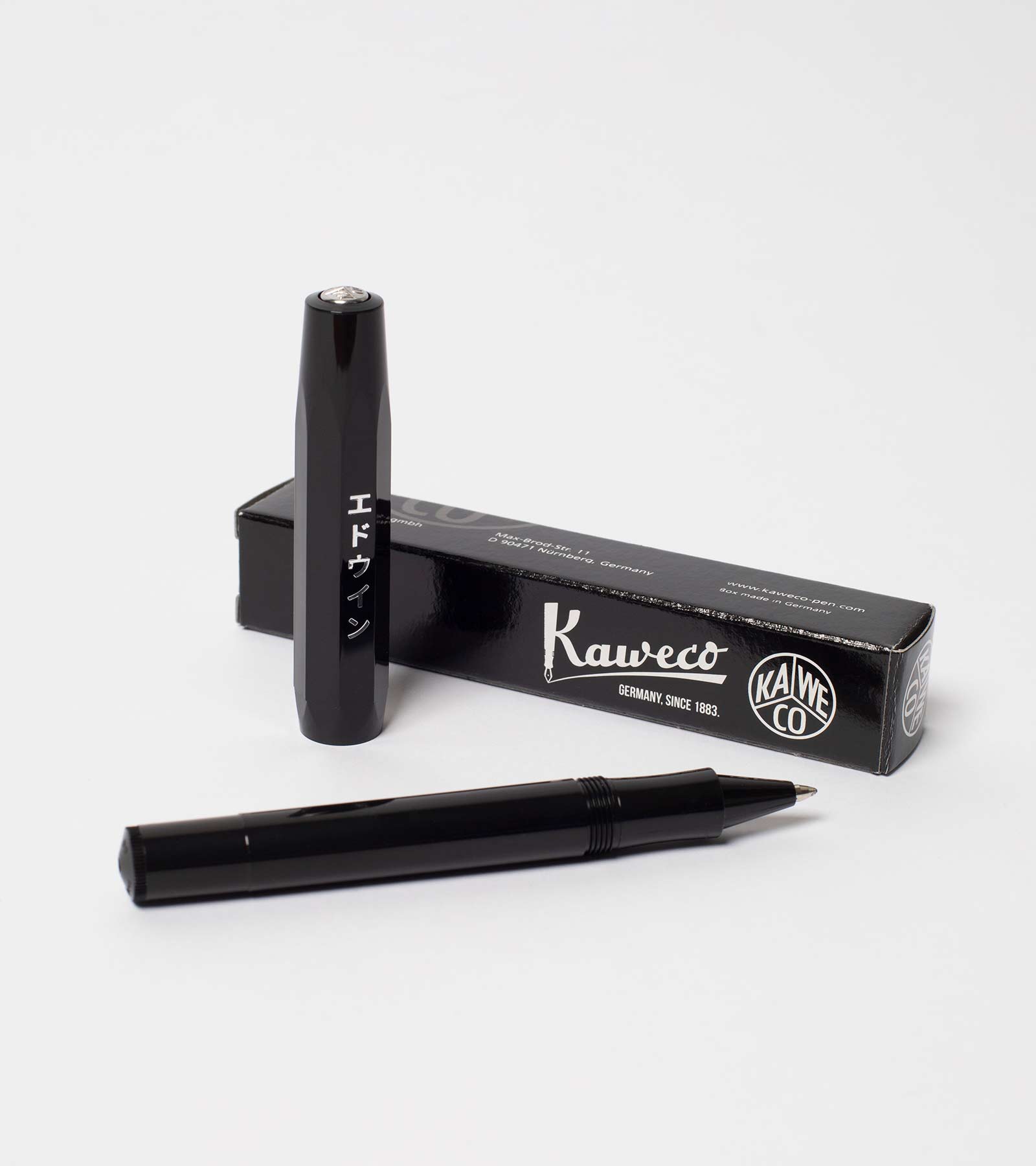 All black everything - The Kaweco rollerball pen performs brilliantly in any situation. The colour can be combined elegantly and classically with various notebooks, papers and other accessories.