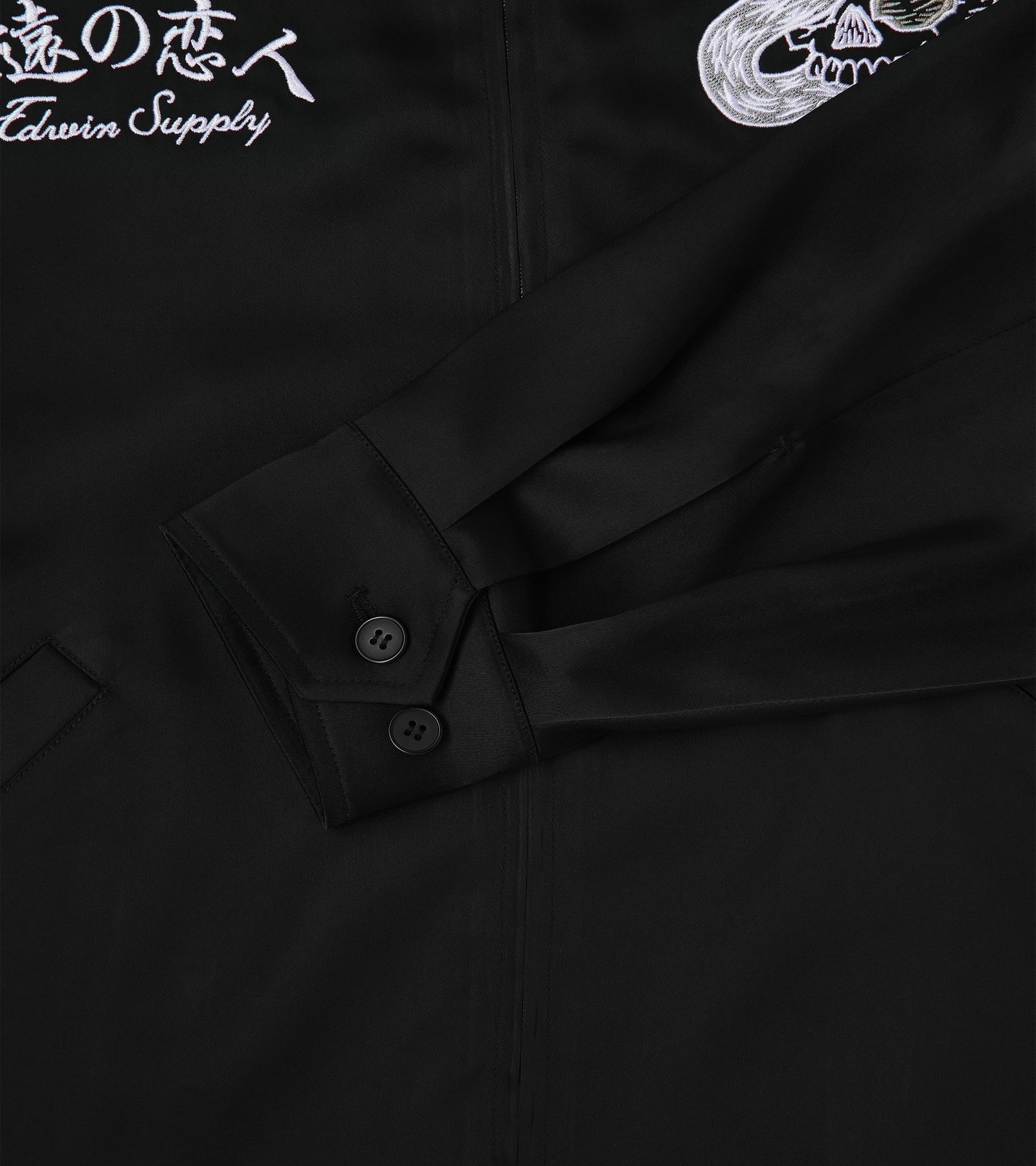 A fine, shiny and drappy satin-like fabric with a glassy appearance, typically seen on classic Japanese souvenir Jackets.