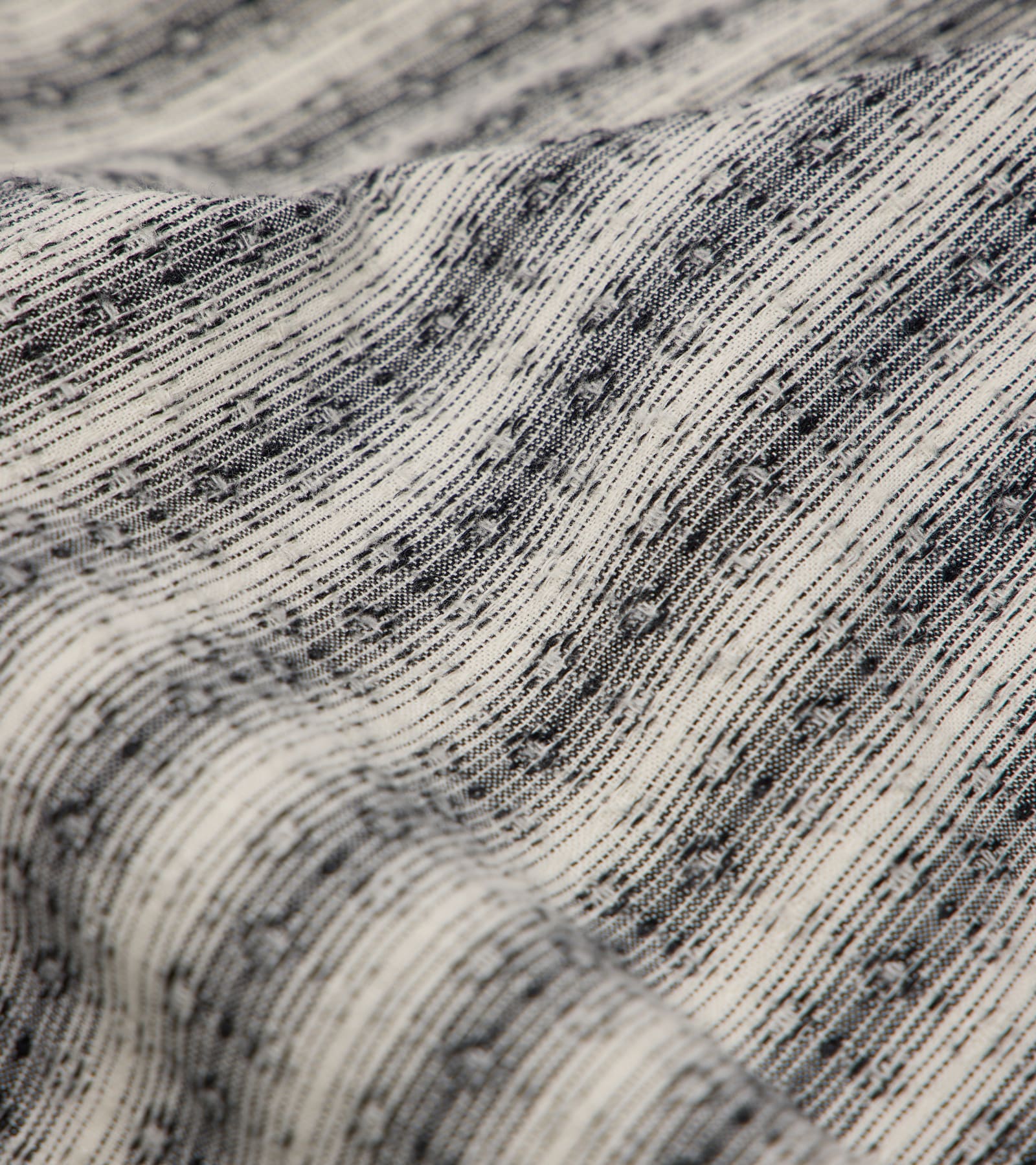 Featuring an irregular weave with a softly diffused striped texture, this Portuguese fabric has a natural hand feel and softness, ensuring an elegant drape when used to make a garment.