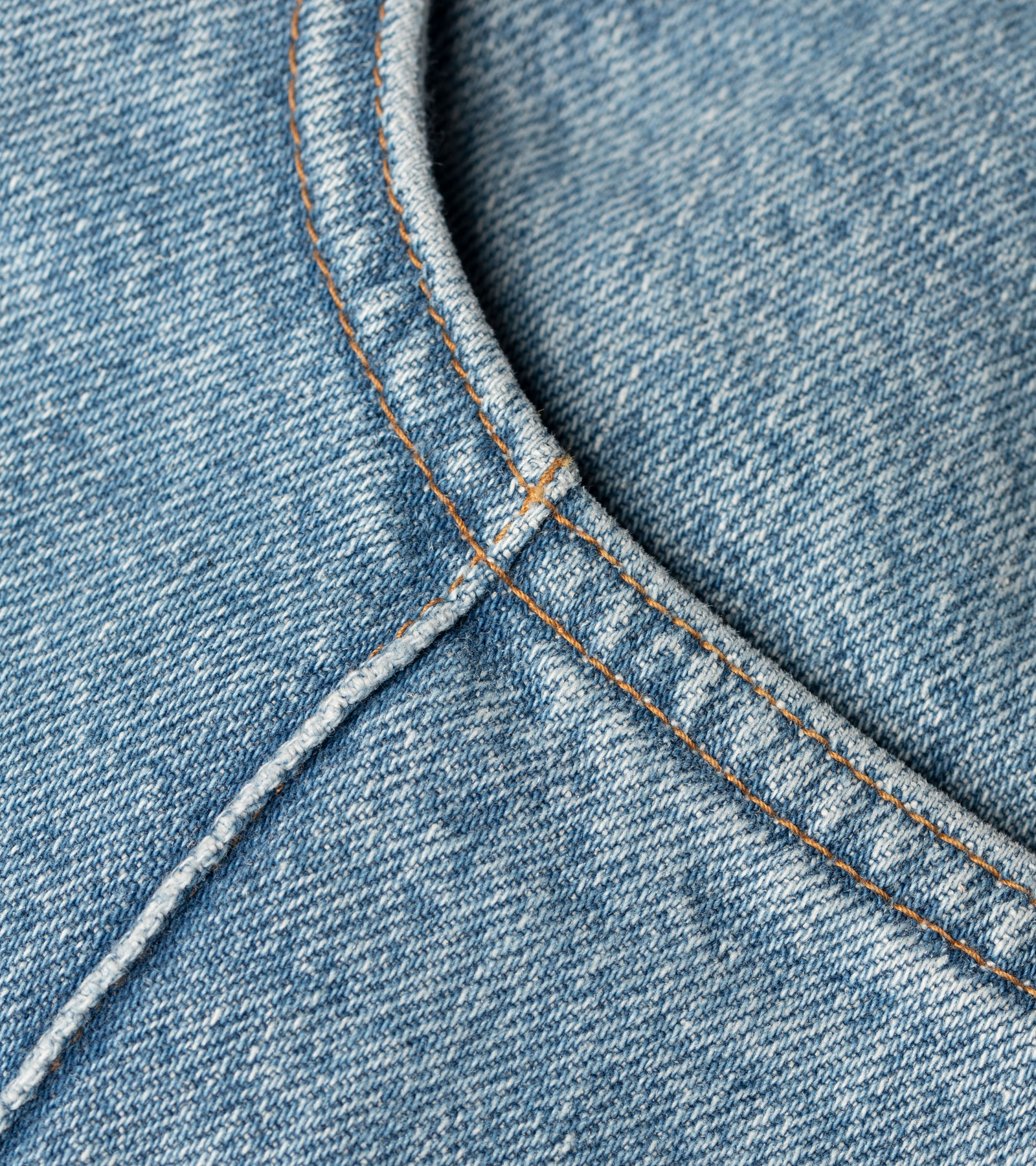 The capsule includes three sustainable solutions: a classic denim jacket, full-length pintuck jeans and loose-fitting denim shorts.